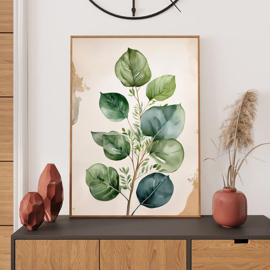 Eucalyptus & Monstera Leaves Wall Art Print – Digital Download PDF | Botanical Nature Home Decor