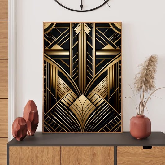 Art Deco Geometric Wall Art Print – Digital Download PDF | Black & Gold Luxury Poster