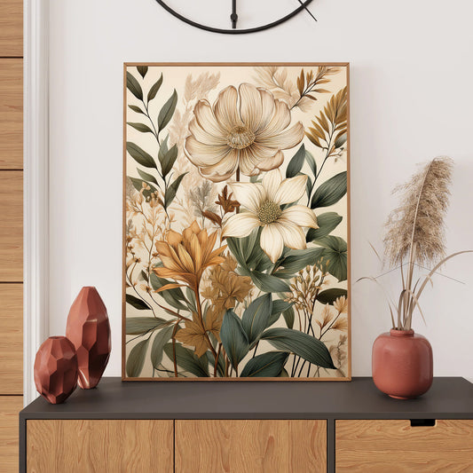 Botanical Wall Art Print – Digital Download PDF | Earthy Tone Plant Illustration Poster
