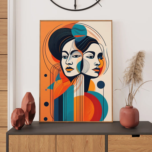 Minimalist Abstract Line Art Faces Wall Art Print – Digital Download PDF | Modern Bold Color Home Decor