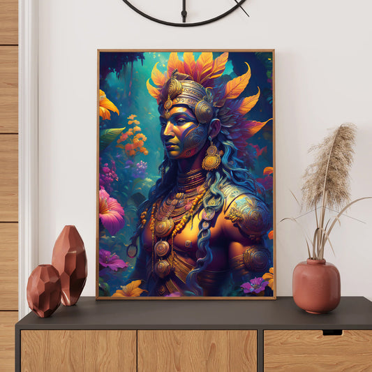 Ancient Indian Wall Art Print – Digital Download | Sacred Deity & Mandala Artwork | Spiritual Poster for Meditation & Home Decor