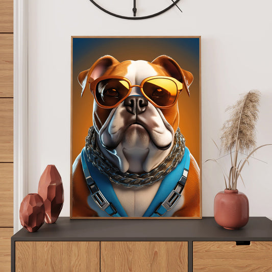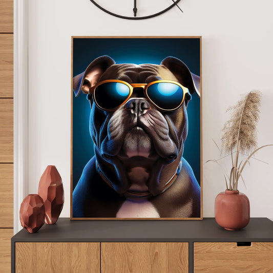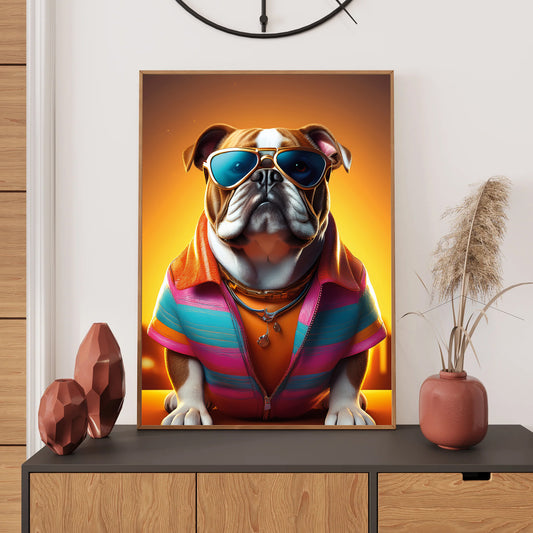 British Bulldog in Sunglasses Wall Art Print – Bold Dog Poster | Digital Download | Iconic Pet Decor for Home or Office