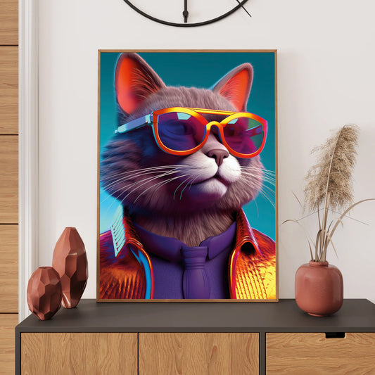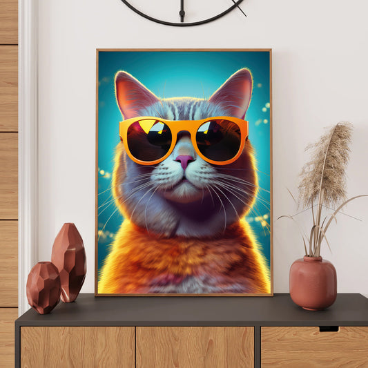 Cool Cat Wearing Sunglasses Wall Art Print – Fun Cat Poster | Quirky Digital Download | Playful Animal Decor for Home or Office