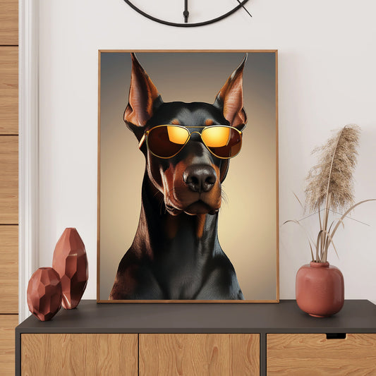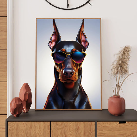 Doberman Wearing Sunglasses Wall Art Print – Cool Dog Poster | Bold Pet Digital Download | Funny Animal Art for Home or Office