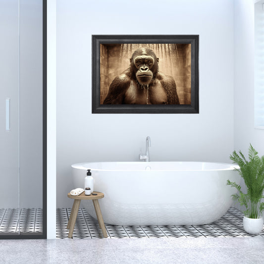 Bathroom Monkey in the Shower Wall Art Print – Funny Animal Bathroom Decor | Digital Download