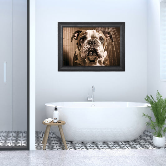 Bathroom British Bulldog in the Shower Wall Art Print – Funny Dog Bathroom Decor | Digital Download