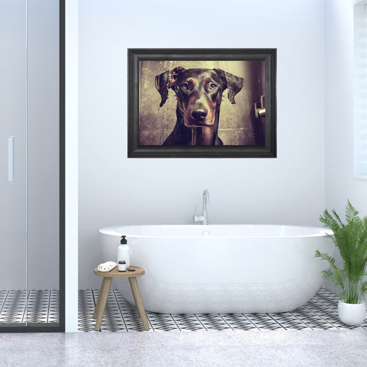Bathroom Doberman in the Shower Wall Art Print – Funny Dog Bathroom Decor | Digital Download