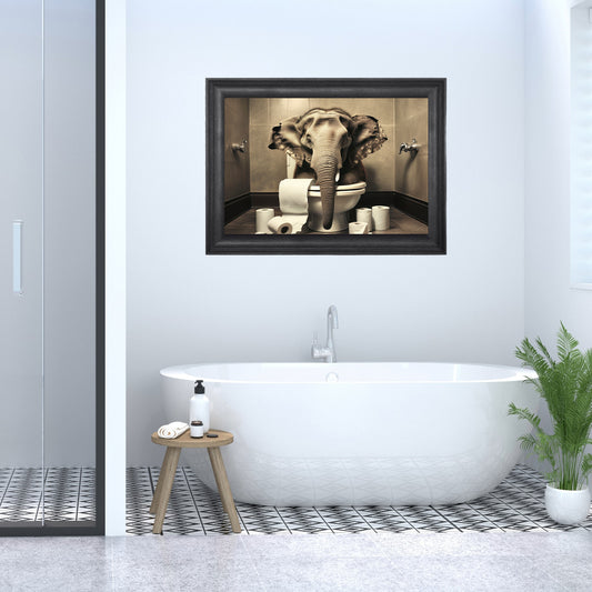 Bathroom Elephant on the Toilet Wall Art Print – Funny Bathroom Decor | Digital Download