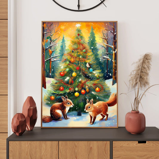 Forest Friends Decorating – Digital Download | Whimsical Animal Christmas Art | Winter Woodland Printable