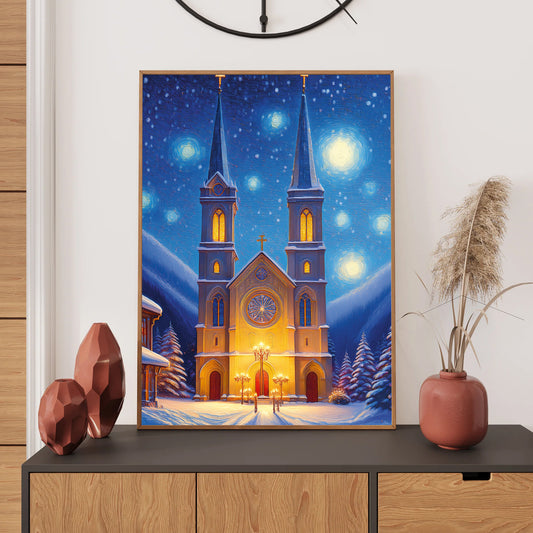 Midnight Mass Glow – Digital Download | Peaceful Church Christmas Art | Winter Night Printable