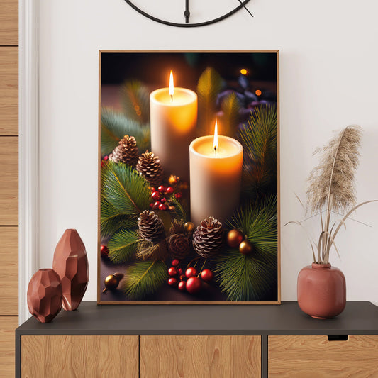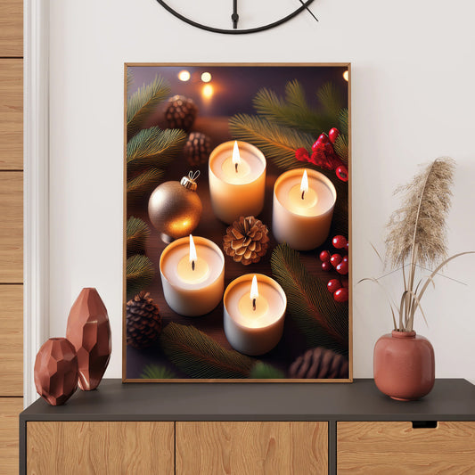 Festive Candle Arrangement Christmas Card – Digital Download | Elegant Holiday Wall Art | Cozy Winter Printable