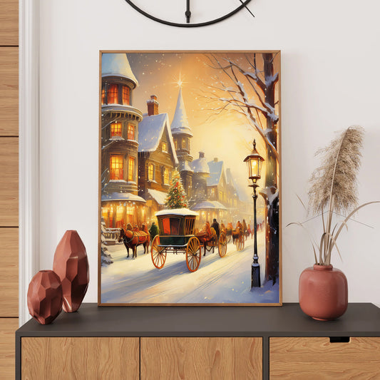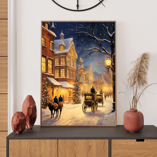 Victorian Christmas Street Scene Card – Digital Download | Vintage Holiday Market Wall Art | Nostalgic Winter Printable