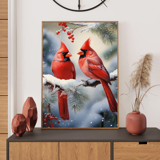 Cardinal Christmas Card – Digital Download | Bright Red Birds on Snowy Evergreen | Festive Winter Wall Art