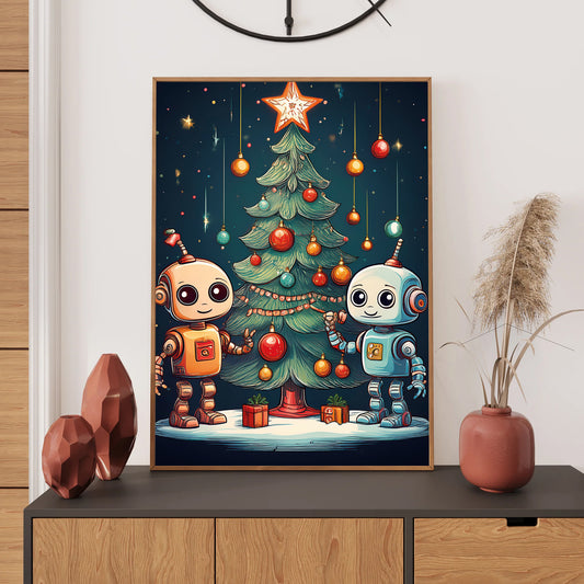 Cute Robot Christmas Card – Digital Download | Cartoon Holiday Wall Art | Fun Festive Printable