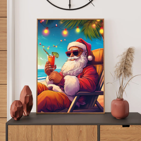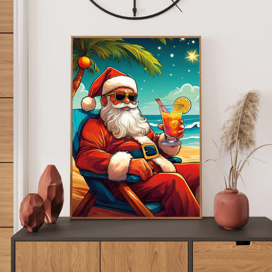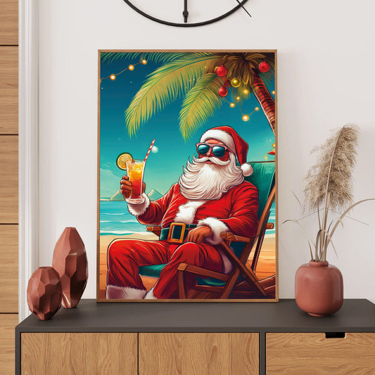 Santa Beach Christmas Card – Digital Download | Fun Holiday Wall Art | Tropical Festive Printable