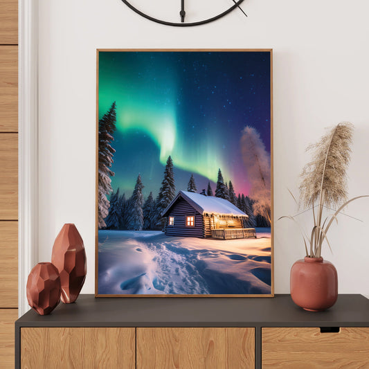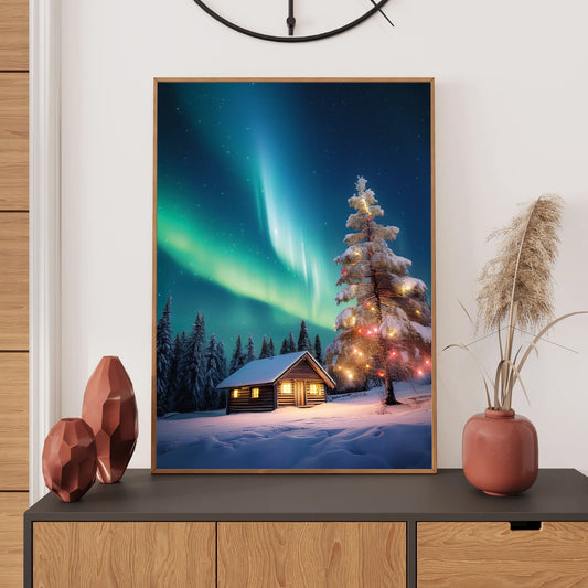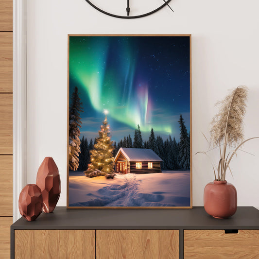 Northern Lights Christmas Card – Digital Download | Magical Aurora Borealis Holiday Wall Art | Winter Printable