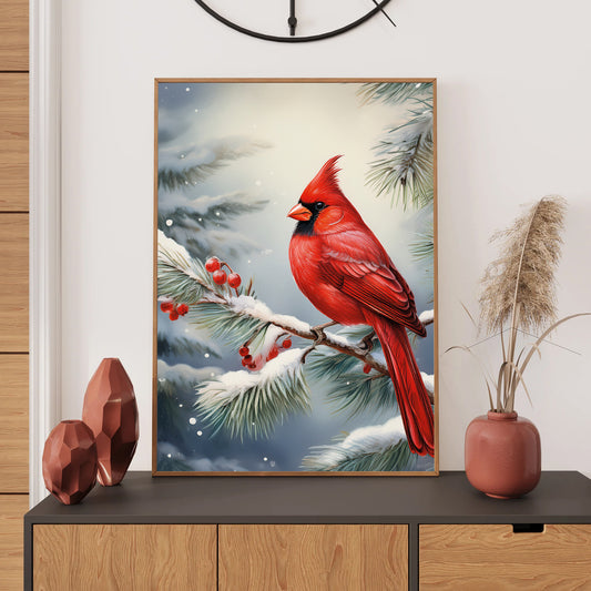 Cardinal Christmas Card – Digital Download | Bright Red Birds on Snowy Evergreen | Festive Winter Wall Art