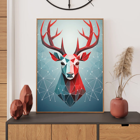 Geometric Reindeer Christmas Card – Digital Download | Modern Holiday Wall Art | Polygon Animal Winter Design
