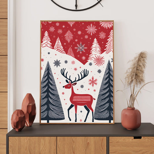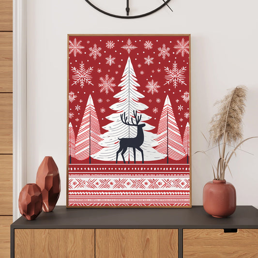 Scandinavian Christmas Card – Digital Download | Nordic Holiday Wall Art | Minimalist Red & White Winter Design