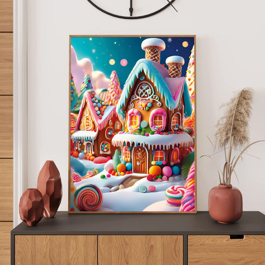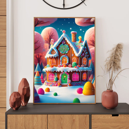 Candy-Colored Gingerbread Houses Christmas Card – Digital Download | Whimsical Holiday Wall Art | Festive Winter Printable
