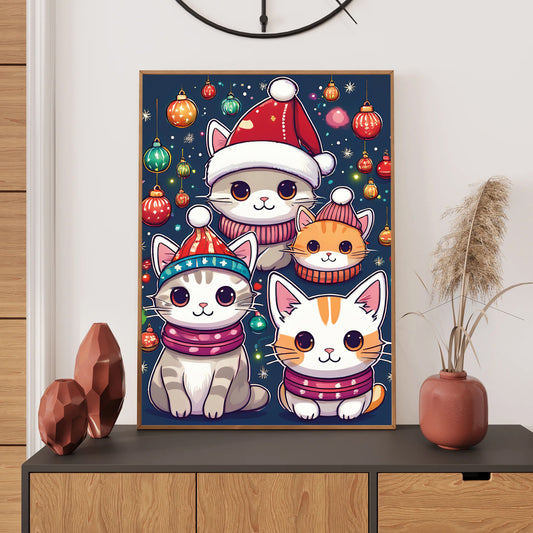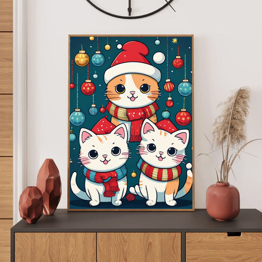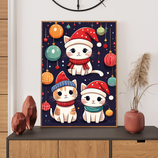 Cute Cats Christmas Card – Digital Download | Adorable Holiday Cats in Santa Hats | Festive Wall Art