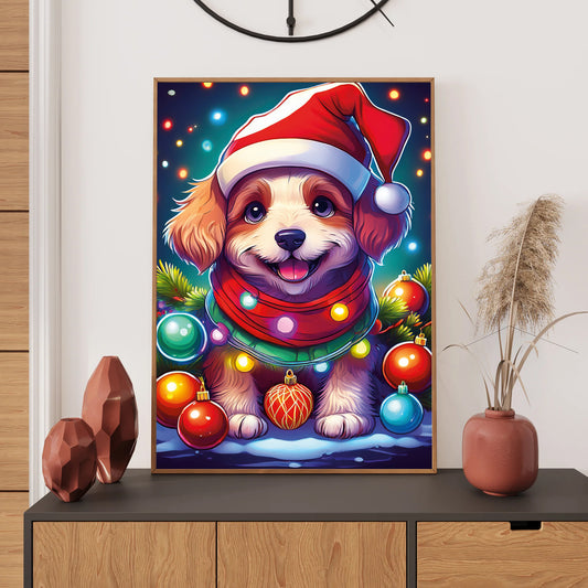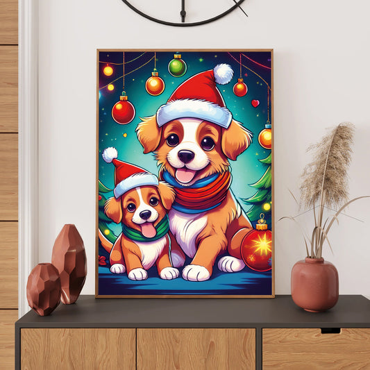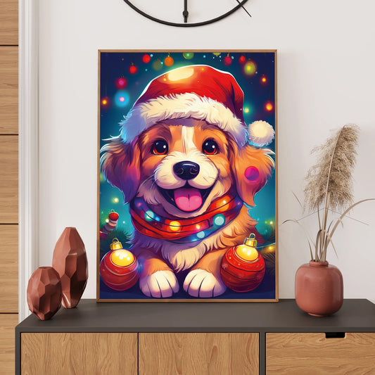 Cute Puppy Christmas Card – Digital Download | Adorable Holiday Dog Wall Art | Festive Greeting Card