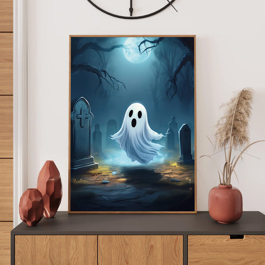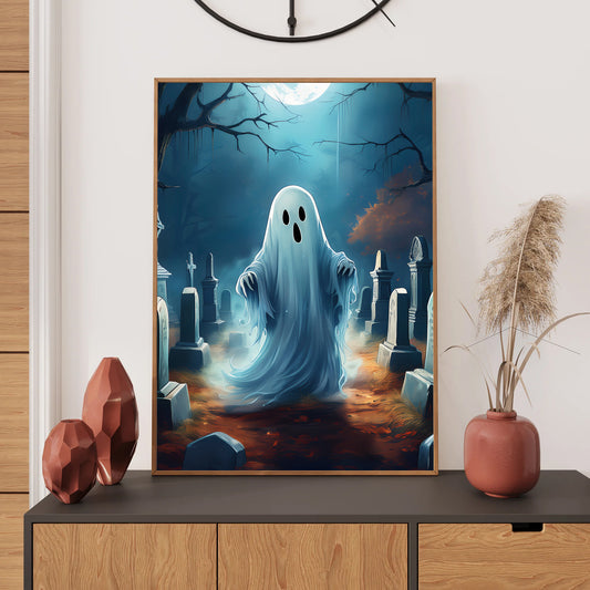 Ghost in a Graveyard – Spooky Gothic Halloween Digital Poster