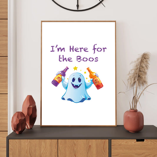 Funny Halloween Art – “I’m Here for the Boos” Spooky Digital Poster for Instant Download