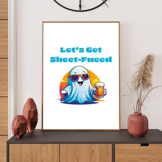 Funny Halloween Art – “Let’s Get Sheet-Faced” Party Decor Digital Poster for Instant Download