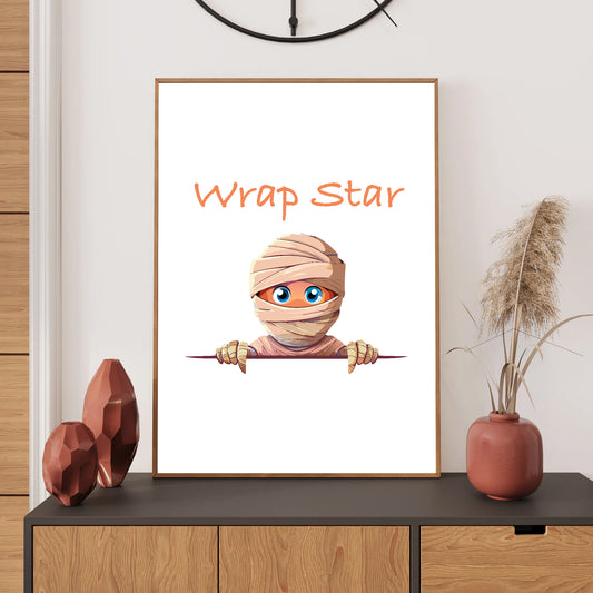 Funny Halloween Mummy Art – “Little Mummy Wrap Star” Spooky Decor Digital Poster for Instant Download