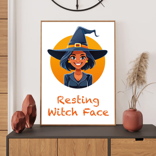 Funny Halloween Art – “Resting Witch Face” Spooky Humour Digital Poster for Instant Download