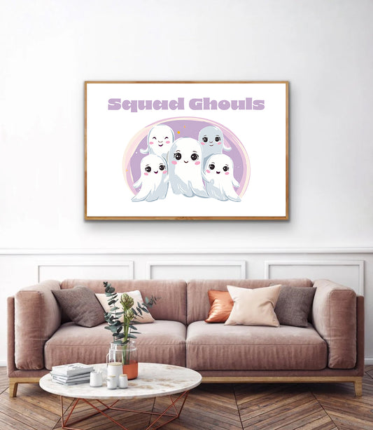 Funny Halloween Ghosts Art – “Squad Ghouls” Spooky Humor Digital Poster for Instant Download
