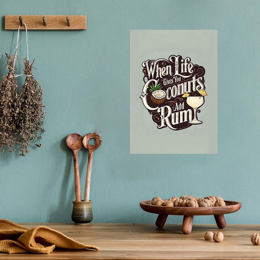 Funny Kitchen Poster – Digital Download PDF | “When Life Gives You Coconuts, Add Rum” | Humorous Kitchen & Bar Wall Art Printable