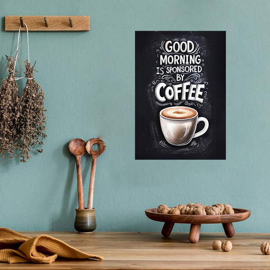 Funny Kitchen Poster – Digital Download PDF | “Good Morning is Sponsored by Coffee” | Humorous Coffee Wall Art Printable
