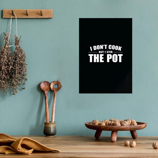 Funny Kitchen Poster – Digital Download PDF | “I Don’t Cook But I Stir the Pot” | Humorous Kitchen Wall Art Printable