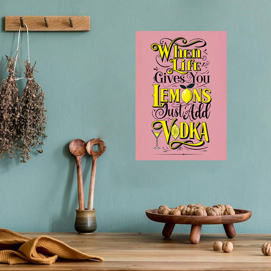 Funny Kitchen Poster – Digital Download PDF | “When Life Gives You Lemons, Just Add Vodka” | Humorous Bar & Kitchen Wall Art Printable