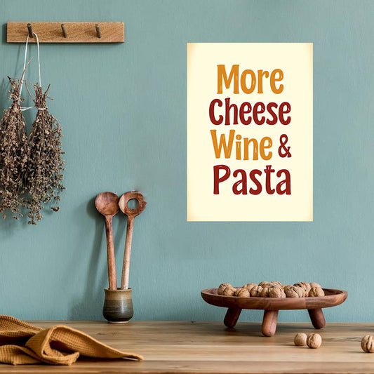 Funny Kitchen Poster – Digital Download PDF | “More Cheese, Wine & Pasta” | Humorous Kitchen Wall Art Printable