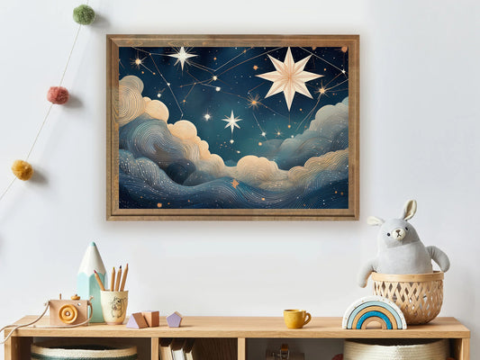Shooting Star Nursery Wall Art Print – Constellation & Celestial Baby Decor | Gender Neutral Room | Instant Download