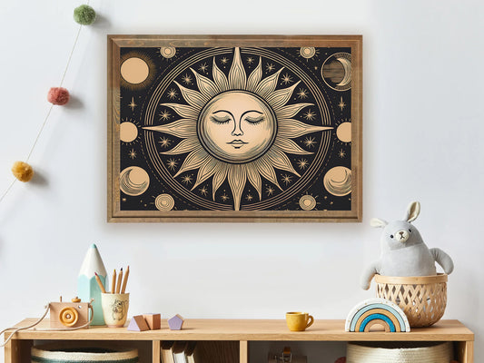 Sun and Moon Nursery Wall Art Print – Boho Celestial Baby Decor | Neutral Baby Room | Instant Download