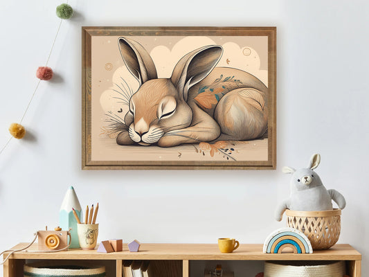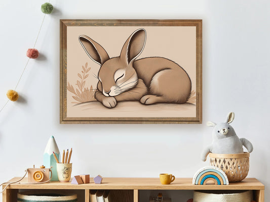 Bunny Nursery Wall Art Print – Scandinavian Minimalist Baby Decor | Neutral Kids Room | Instant Download