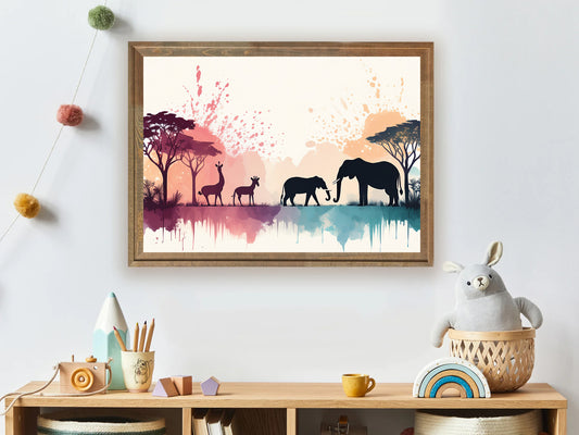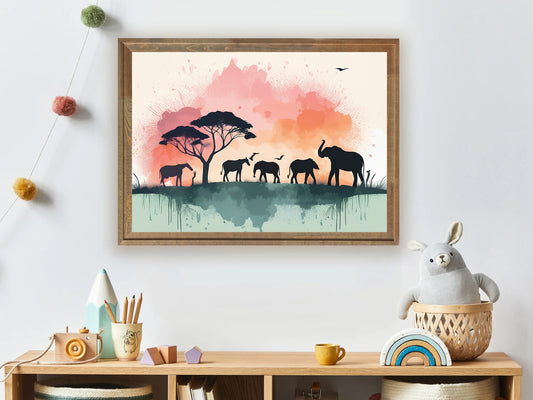Safari Nursery Wall Art Print – Minimalist Animal Silhouette Decor | Jungle Baby Room | Instant Download