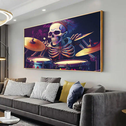 Skeleton Playing the Drums Wall Art Print – Digital Download, Skull Music Decor, Gothic Rock Art for Studio or Home, Printable Music Poster