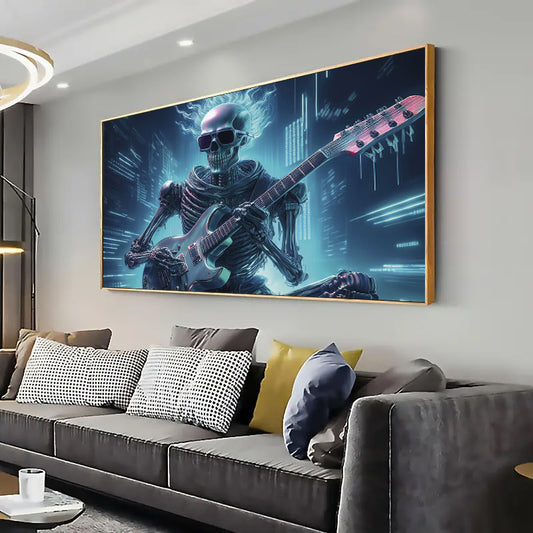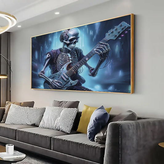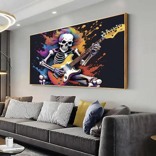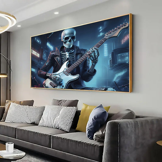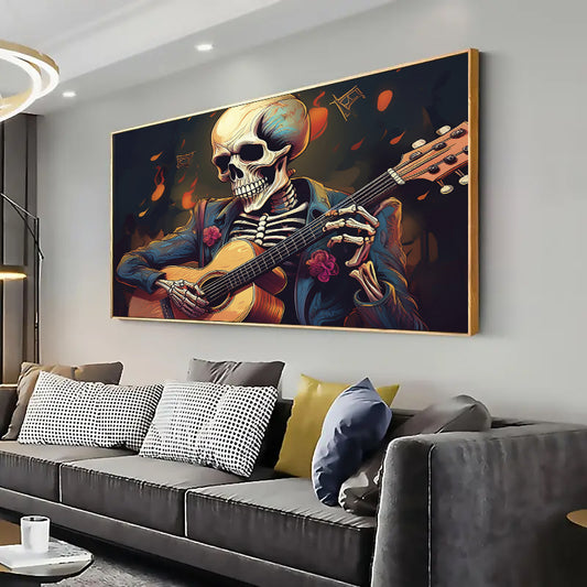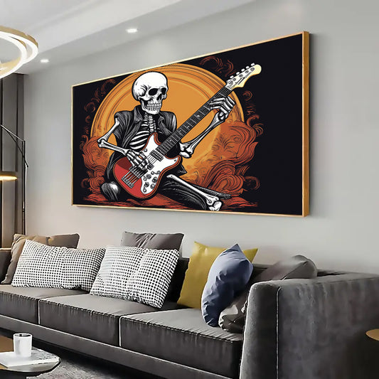 Skeleton Playing the Guitar Wall Art Print – Digital Download, Rock & Roll Skull Poster, Gothic Music Decor, Printable Artwork for Home or Studio