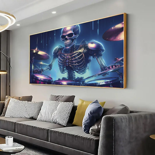 Skeleton Playing the Drums Wall Art Print – Digital Download, Gothic Music Decor, Skull Drummer Poster, Edgy Printable Art for Studio or Home