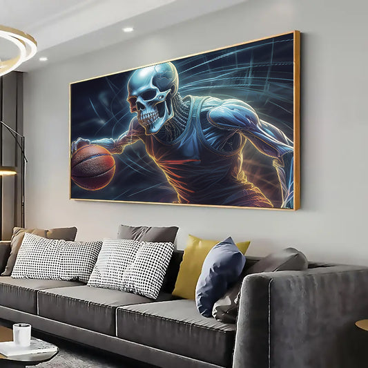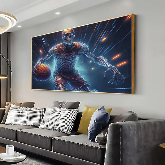 Skeleton Playing Basketball Wall Art Print – Digital Download, Gothic Sports Poster, Skull Basketball Artwork, Edgy Printable Decor for Game Rooms