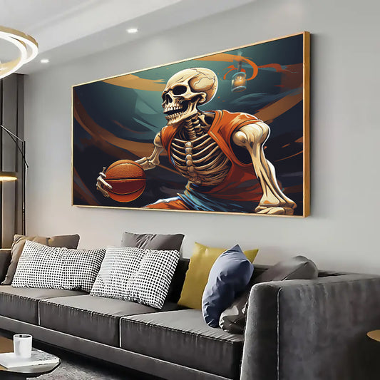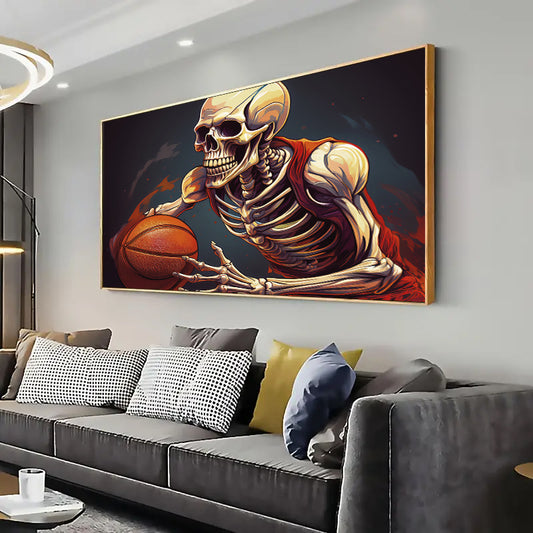 Skeleton Playing Basketball Wall Art Print – Digital Download, Gothic Sports Poster, Skull Athlete Art for Game Room or Modern Decor