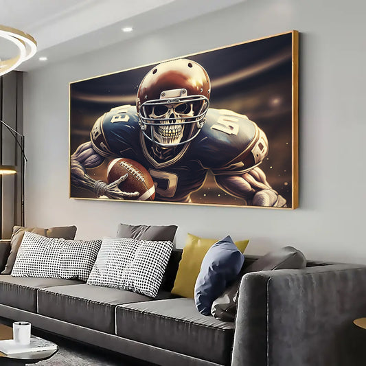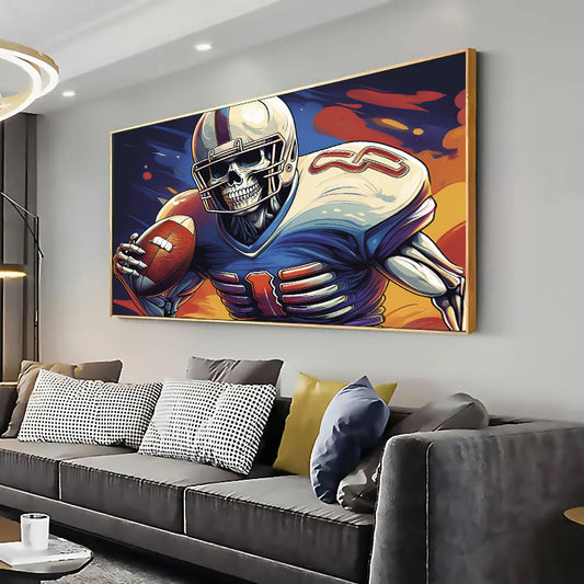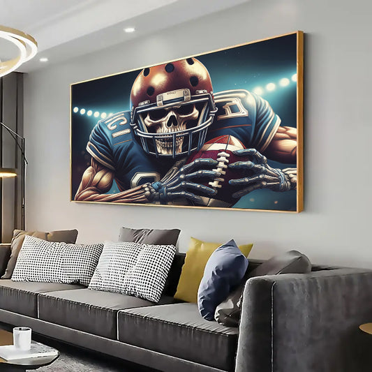 Skeleton Playing American Football Wall Art Print – Digital Download, Gothic Sports Decor, Skull Athlete Poster for Game Room or Man Cave