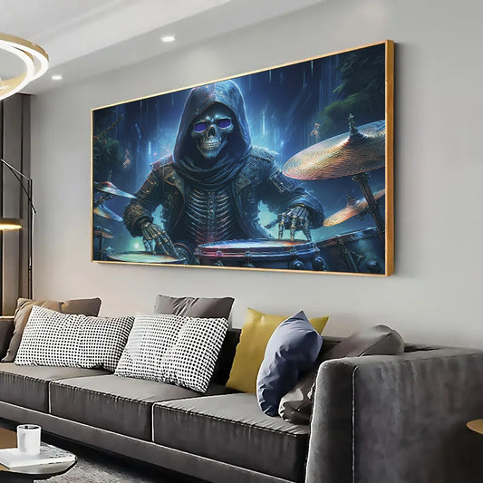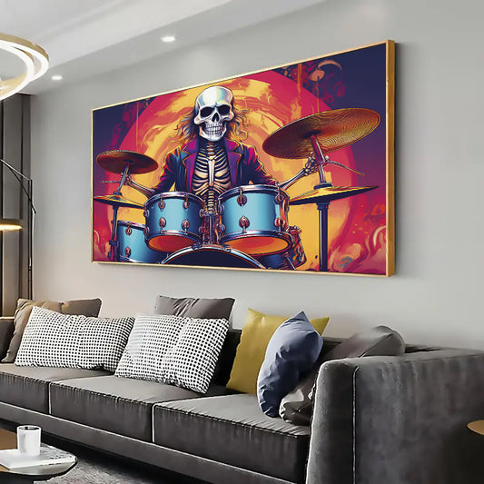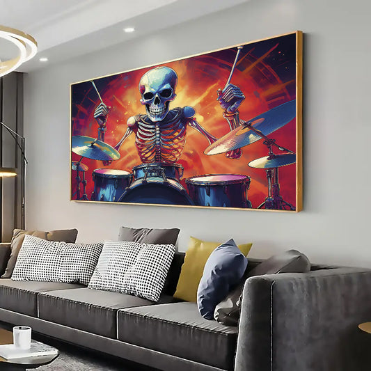 Skeleton Playing Drums Wall Art Print – Digital Download, Skull Music Poster, Gothic Band Decor for Musicians & Rock Enthusiasts