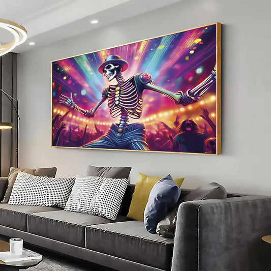Skeleton at the Disco Wall Art Print – Digital Download, Funky Skull Artwork, Retro Gothic Party Decor for Dance & Music Lovers