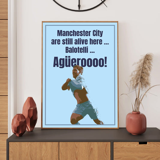 Sergio Agüero Manchester City Quote Wall Art Print – Iconic Football Poster | Digital Download | Sky Blue Decor for True Fans